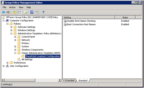 Note: You need to restart the machines on which policy is applied once you have applied DisableStrictNameChecking for the first time.